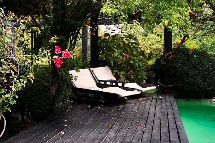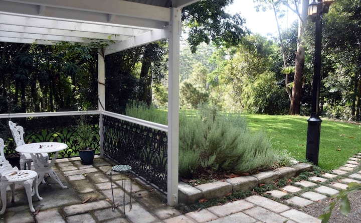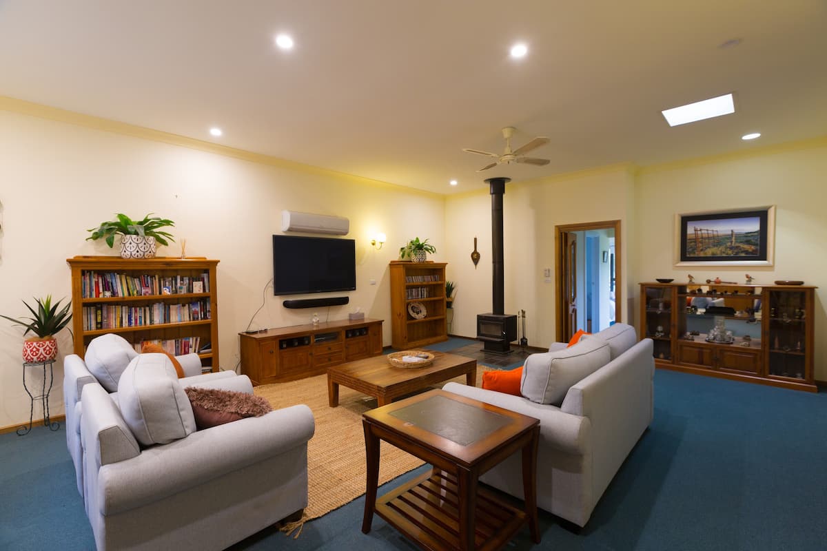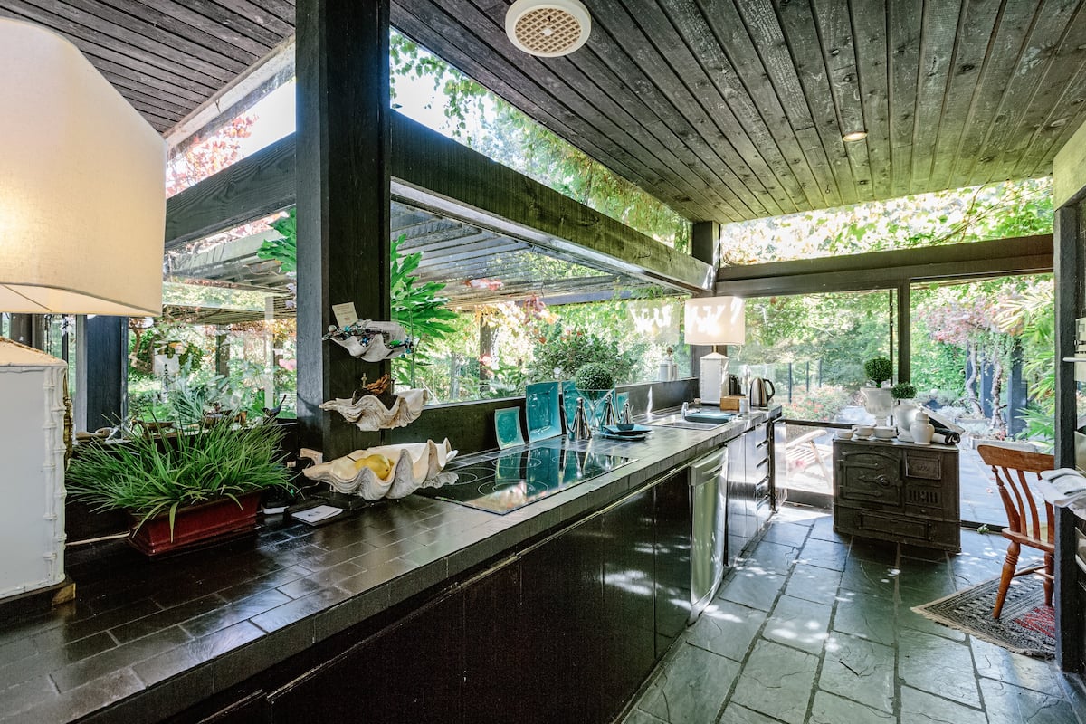 - This next one would have to be by far my favourite on the list, between it’s extensive libraries, over the top, eclectic furnishings and ability to mold the outside wilderness so easily and beautifully with the interior, Ttekceba Retreat is an absolute must when visiting the Dandenong Ranges. This house also has a pool and stunning gardens all available for just $295 a night